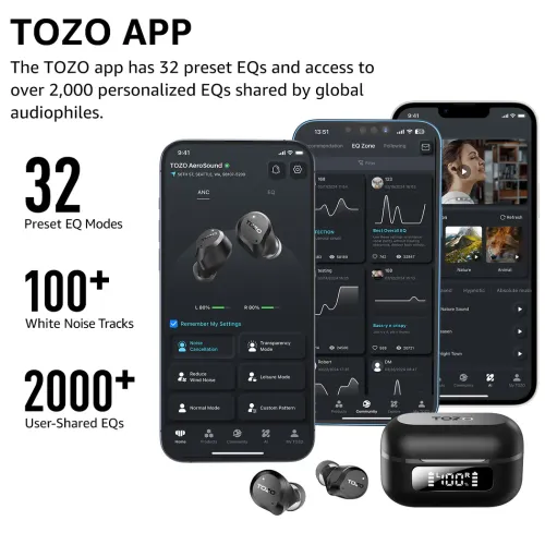 | Others | TOZO ORIGX Acoustic 2.0 Technology IPX6 Water Resistance Smart Touch Control Stereo Sound Quality TOZO App Support (iOS & Android) Low-latency mode Smart Digital Display |