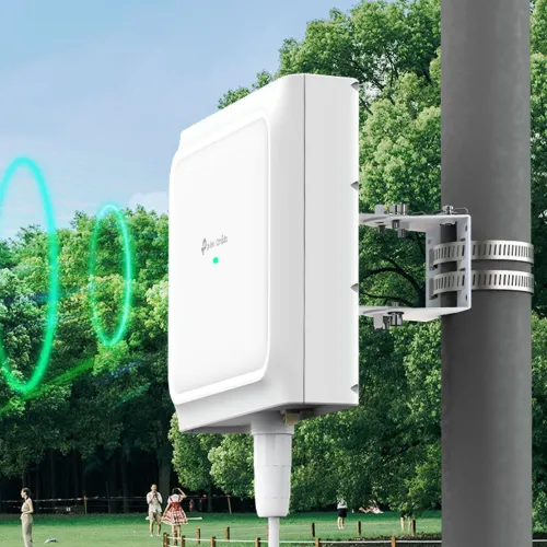 The TP-Link EAP650 D120-Outdoor Access Point is based on WiFi 6 technology and offers improved AX3000 speeds of up to 2402 Mbps on the 5 GHz band and 574 Mbps on the 2.4 GHz band for seamless data transmission. The TP-Link EAP650 D120-Outdoor AX3000 WiFi 6 Access Point is designed for warehouses, campuses, and outdoor environments, with an IP68 weatherproof housing that functions reliably from -30°C to +70°C. Built-in high-gain directional antennas with 8 dBi on 2.4 GHz and 10 dBi on 5 GHz provide ultra-long-range coverage of more than 200 meters on 2.4 GHz and 500 meters on 5 GHz, with a focused 120-degree horizontal and 30-degree vertical beamwidth. The TP-Link EAP650 D120-Outdoor Access Point provides smooth roaming with 802.11k, v, and r protocols, guaranteeing continuous connectivity for AGVs, portable scanners, and mobile clients. Flexible deployment is supported by 802.3at PoE or 48V passive PoE via a Gigabit Ethernet connection, and optional mounting brackets allow for exact angle adjustments. This TP-Link EAP650 D120-Outdoor Access Point supports IEEE 802.11a/b/g/n/ac/ax protocols and can handle over 250 concurrent clients. It also includes advanced wireless technologies including OFDMA, 1024-QAM, MU-MIMO, beamforming, band steering, load balancing, airtime fairness, and Omada Mesh. WPA, WPA2, WPA3, 802.1X, captive portal authentication, VLAN mapping, and rogue AP detection are all part of the comprehensive security solution. The TP-Link EAP650 D120-Outdoor AX3000 Indoor/Outdoor WiFi 6 Access Point is simple to deploy, monitor, and administer at scale thanks to its centralized cloud management via the Omada app, web UI, controllers, SNMP, SSH, and zero-touch provisioning. The TP-Link Access Point supports Bluetooth, LED control, email alerts, system logging, multi-site management, static or dynamic IP configuration, transmission power control, QoS, multiple SSIDs, guest networking, and dependable performance for enterprise networks with diverse deployments and mission-critical wireless applications.