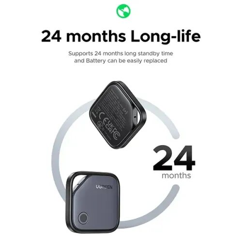 Others | Certification: Apple Find My Certified (iOS, iPadOS, macOS only) Battery Type: Replaceable CR2032 button battery Battery Life: Up to 2 years (low-power chip, battery level viewable in Find My app) Child Safety: UL4200A certified, childproof cover design |