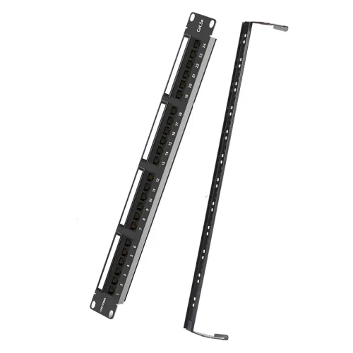 The Vention KGAB0 Cat6 UTP 24 Port Keystone Patch Panel is a versatile and efficient solution for organizing and managing network connections. Designed for small to medium-sized businesses, data centers, and IT installations, this patch panel offers high-performance connectivity in a compact form factor. With its 24 ports and Cat6 UTP standard, it provides ample capacity for mid-sized networks while ensuring fast and reliable data transmission. The keystone jack design adds flexibility to your setup, allowing for easy customization and maintenance of individual ports. The Vention KGAB0 Cat6 UTP 24 Port Keystone Patch Panel is a versatile and efficient solution for organizing and managing network connections. Designed for small to medium-sized businesses, data centers, and IT installations, this patch panel offers high-performance connectivity in a compact form factor. With its 24 ports and Cat6 UTP standard, it provides ample capacity for mid-sized networks while ensuring fast and reliable data transmission. The keystone jack design adds flexibility to your setup, allowing for easy customization and maintenance of individual ports. The Vention KGAB0 is a robust Cat6 UTP patch panel featuring 24 RJ45 keystone jacks. Compatible with standard 19-inch racks, it occupies a single unit (1U) of rack space, measuring 1.75 inches in height. This panel supports data transfer rates of up to 1 Gbps, making it suitable for high-speed network applications. While optimized for Cat6, it maintains backward compatibility with Cat5e cables and can accommodate Cat6A connections. The model comes equipped with port identification labels, facilitating organized cable management and easy network troubleshooting. Its unshielded twisted pair (UTP) design offers a balance of performance and cost-effectiveness for most indoor networking environments. The Vention KGAB0 patch panel is built to deliver reliable performance in various network environments. Its Cat6 UTP standard supports data speeds up to 1 Gbps, making it suitable for most modern networking needs. The panel's 1U height and 19-inch rack mount design ensure it fits seamlessly into standard server racks, optimizing space usage. The keystone jack configuration allows for easy replacement of individual ports, enhancing the panel's longevity and adaptability. With included port identification labels, this patch panel facilitates organized cable management and simplifies network troubleshooting, making it an excellent choice for IT professionals and network administrators.