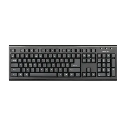 The Verbatim Wireless Keyboard Mouse Combo #66519 provides consistent performance for home and office customers who prioritize comfort, efficiency, and a tidy desk environment. The Verbatim Keyboard Mouse Combo has a full-size keyboard with 104 keys for accurate typing, as well as a tiny mouse with four responsive buttons for easy navigating. The Verbatim Keyboard Mouse Combo features durable RF 2.4GHz wireless technology to provide easy input with minimal interference, and a realistic working distance of 8 to 10 meters allows for flexible positioning. The mouse has three sensitivity settings: 800, 1200, and 1600 dpi, allowing for accurate control when browsing, working on documents, or doing light creative work. Intelligent sleep mode is activated after 10 seconds of inactivity to save power and extend battery life without disrupting workflow. This Verbatim Wireless Keyboard Mouse Combo is compatible with Windows XP, Windows 7, Windows 8, Windows 10, and Mac OS. The keyboard is designed for daily use and can work comfortably in temperatures ranging from 0°C to 40°C, providing constant response in a variety of situations. Durable materials increase longevity, with the keyboard composed of ABS and HIPS and the mouse constructed of strong ABS for a balanced feel. The intelligently balanced product weight improves stability and mobility, with the keyboard weighing 476g, the mouse 62g, and the ultra-small nano receiver weighing only 1.8g for easy travel and storage. The Verbatim Wireless Keyboard Mouse Combo #66519 is ideal for users looking for a simple, professional wireless solution that combines dependable connectivity, power-saving design, precise mouse control, and broad system support, making it a practical choice for workstations that require comfort, efficiency, and trusted Verbatim quality. This wireless keyboard-mouse combo is ideal for productivity, study, and casual computing, with simple setup, dependable daily operation, and tidy workspaces, while the nano receiver integrates seamlessly for consistent performance across desks, laptops, and shared environments in modern professional offices worldwide.