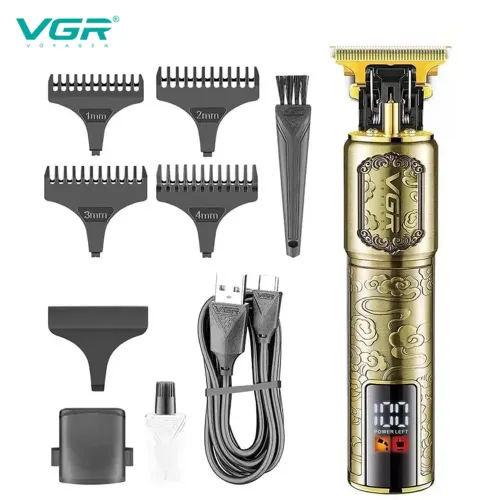 The VGR V-073 Trimmer is a premium grooming tool designed for precision, durability, and style. Crafted with a robust metal body and a sleek gold finish, the VGR V-073 Zero Cutting Hair & Beard Trimmer combines aesthetics with performance. It features a titanium-coated precision blade that ensures ultra-close cutting, making it perfect for clean fades, sharp beard lines, and detailed styling. Powered by a 1500mAh lithium battery, this trimmer offers an impressive 240 minutes of runtime on a full charge, with a Type-C fast charging port that replenishes the battery in just 3 hours. Whether you prefer corded or cordless use, the VGR V-073 adapts to your needs, offering flexibility and uninterrupted grooming sessions. The trimmer includes four guide combs (1mm, 2mm, 3mm, and 4mm) for customizable trimming lengths, and its digital LED display provides real-time updates on battery status and oil maintenance reminders. Designed for zero-gap trimming, it delivers a smooth and professional finish every time. With its ergonomic design and quiet motor, the VGR V-073 ensures comfort and control during extended use. This VGR trimmer is a reliable choice for those seeking salon-quality results at home.