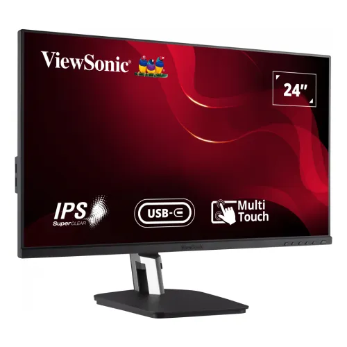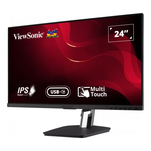 The ViewSonic TD2455 23.8" IPS FHD Multi-Touch Monitor is a 24-inch Full HD display designed for productivity, collaboration, and interactive use. It offers a 23.8-inch viewable area with sharp clarity. This touch-screen monitor features IPS technology, delivering wide 178-degree viewing angles. Colors remain vibrant and consistent, supported by 16.7 million shades and 8-bit depth for smooth gradients. The ViewSonic TD2455 provides crisp details with 1920 x 1080 resolution. A 1,000:1 static contrast ratio and 50M:1 dynamic contrast ratio enhance depth and image quality. Brightness reaches 250 cd/m², suitable for office and classroom environments. The anti-glare surface treatment reduces reflections, while the hard coating ensures durability against scratches. The ViewSonic TD2455 monitor supports 10-point projected capacitive multi-touch. These features make the ViewSonic TD2455 Touch-Screen Monitor ideal for presentations, design, and education, offering smooth and responsive interaction. Response time is 6ms GTG, ensuring fluid visuals during fast motion. The 60Hz refresh rate supports everyday tasks and interactive applications without lag or ghosting. Eye-care features include flicker-free technology and a low blue light software solution. These reduce strain during extended use, making this ViewSonic touch monitor suitable for long sessions. Connectivity options include HDMI 1.4, DisplayPort, DisplayPort Out, USB 3.2 Type A, Type B, and Type C with 60W charging support. A 3.5mm audio out port is also available. Built-in dual 2W speakers deliver clear audio for video calls and multimedia. The internal power supply supports eco modes, reducing consumption to as low as 9.7W. Compatibility extends across Windows 7 to 11 and macOS. Maximum resolution is supported on both PC and Mac systems, ensuring seamless integration. Ergonomics include tilt adjustment from -5° to 60°. The monitor is VESA-compatible with 100 x 100 mm mounting options, offering flexible installation. Durability is ensured with a backlight life of 30,000 hours. Operating conditions range from 0°C to 40°C, with humidity tolerance up to 90%. The ViewSonic TD2455 Multi-Touch Monitor combines Full HD resolution, wide viewing angles, and advanced touch capability. It is optimized for productivity, collaboration, and interactive learning environments.
