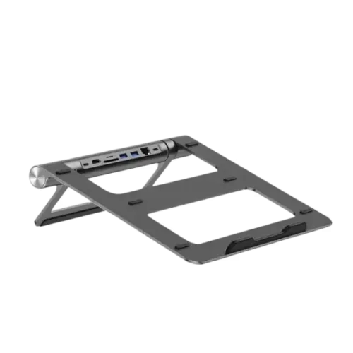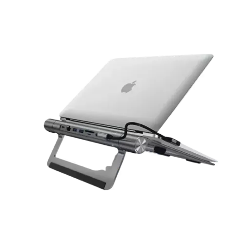 The WiWU A821CH Laptop Stand with 8‑in‑1 Type‑C Hub is a multifunctional workstation solution designed to improve comfort and expand connectivity for modern laptops. Made from durable aluminum alloy, it combines a stable laptop stand with a powerful Type‑C docking station that includes 2xType‑C, 2xUSB 3.0, SD/TF card slots, RJ45, and HDMI (4K30Hz) for efficient multitasking. The stand supports safer and more ergonomic working angles while offering multiple ports to expand your workspace. When connected to an HDTV or monitor via the HDMI interface, the resolution reaches 4K30Hz for clear and smooth visuals. The RJ45 port supports up to 1000Mbps Gigabit wired network, ensuring fast and stable internet access for streaming, video calls, and large file transfers. Its Type‑C input supports the PD3.0 protocol with up to 100W power delivery, enabling high‑speed charging while maintaining performance. The 2x USB 3.0 ports provide fast data transfer for accessories, while the SD/TF card slots offer convenient reading and writing for media files. The WiWU A821CH is an ideal all‑in‑one solution for users who need a durable laptop stand and a Multifunctional hub that enhances productivity, connectivity, and workspace efficiency.