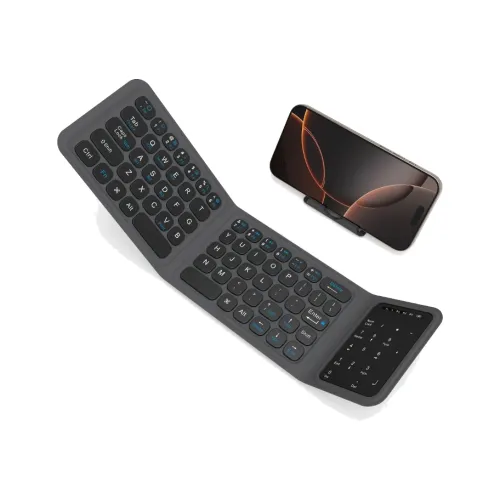 The WiWU FMK-05 Bluetooth Wireless Foldable Mini Keyboard is a compact and efficient typing solution built for modern, on-the-go users. This WiWU Wireless Keyboard uses Bluetooth V5.2 to deliver fast, stable, and low-latency wireless connectivity with smartphones, tablets, and laptops. Designed with a 64-key layout including a tracking number pad, this WiWU Mini Keyboard offers a comfortable and practical typing experience despite its portable size. It is powered by a 200mAh battery that provides up to 40 hours of working time, ensuring long-lasting performance for daily tasks. The keyboard charges quickly via USB Type-C, with a full charge taking only 1.5 hours, adding extra convenience for travel and work. With its sleek foldable design, long battery life, and reliable wireless performance, the WiWU Bluetooth Keyboard is an excellent WiWU Foldable Keyboard for productivity anytime, anywhere.