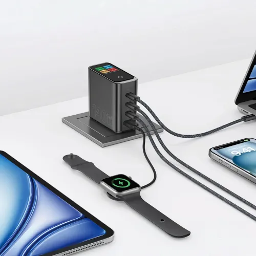 The WiWU VOYAGER Wi-G028 140W PD GaN 4-in-1 Charger Adapter delivers massive 140W total output for laptops, tablets, and smartphones. Designed with advanced GaN technology, the WiWU Adapter ensures efficient, cooler, and stable high-speed charging. The intelligent screen displays real-time power and temperature, giving users clear charging status visibility. WiWU VOYAGER Wi-G028 140W Adapter supports PD, QC3.0, and UFCS fast charging protocols for broad compatibility. The powerful C1 port provides up to 140W output with 9V, 15V, 20V, and 28V profiles. C2 and C3 ports each deliver up to 65W, ideal for ultrabooks and tablets. The A1 USB-A port offers up to 30W output for smartphones and accessories. WiWU VOYAGER Wi-G028 Adapter allows four devices to fast charge simultaneously without waiting in line. Combined output configurations intelligently distribute power, including 100W plus 35W and 65W plus 65W modes. It supports combinations like 65W plus 45W plus 30W for three connected devices. The adapter handles input of 100–240V AC, 50/60Hz, 2.6A maximum for global use. Built with PC V0 fireproof material and copper pins, it resists heat and impact. Multi-layer protections guard against over-temperature, over-voltage, over-current, and short-circuits for long-term reliability. WiWU VOYAGER Wi-G028 140W PD GaN 4-in-1 Charger Adapter maintains safe, full-speed charging without harming connected devices. Certified with CCC, CE, ROHS, and FCC standards, this WiWU Adapter ensures trusted safety compliance. Its compact four-port design suits offices, travel, and home workstations. WiWU VOYAGER Wi-G028 140W PD GaN 4-in-1 Charger Adapter combines smart display monitoring, powerful performance, and versatile multi-device charging in one dependable solution.