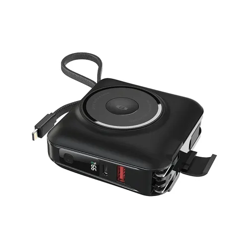 The WiWU Wi‑P051 15000mAh 45W Wireless Power Bank with Built‑in Charger & Cable is a high‑capacity portable charging solution that combines powerful performance with convenience. Featuring a 15000mAh (8400mAh rated) battery, this WiWU 45W Power Bank delivers fast PD charging up to 45W, making it ideal for smartphones, tablets, and laptops. With multiple output interfaces including USB, Type‑C, and Lightning, it ensures universal compatibility across devices. The built‑in dual cables and integrated AC charging port eliminate the need for extra accessories, while the digital display keeps you updated on battery status at a glance. Compact yet powerful, the WiWU Wireless Power Bank supports both wired and wireless charging, offering flexibility for every situation. Lightweight, durable, and equipped with advanced safety protection, the WiWU Wi‑P051 is the perfect choice for travelers, professionals, and everyday users seeking a reliable WiWU Power Bank with Built‑in Charger that balances speed, portability, and versatility.