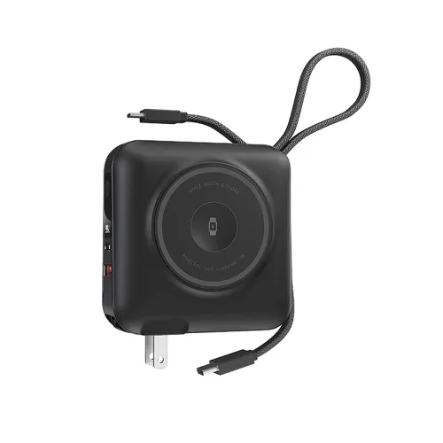 | Output | USB-A OUT: 5V-2.4A(Max) OUT: Type-C Cable 5V-3A(Max) OUT: Lightning Cable 5V-2.4A(Max) Total OUT:5V-3A(Max), Power Bank Mode: USB-A OUT: 5V-3A/ 9V-2A/ 10V-2.25A (SSCP)/ 12V-1.5A (22.5W Max), OUT: Type-C Cable 5V-3A/ 9V-3A/ 12V-3A/ 15V-3A/ 20V-2.25A(45W Max), Apple Watch Wireless Charging OUT: 5V-0.5A(2.5W Max), Wireless Charging OUT: 5V-1A/7.5V-1A/9V-1.12A/9V-1.66A(15W Max), OUT: Lightning Cable 5V-2.4A/9V-3A(27W Max), TotalOUT: 5V-3A(Max) | |