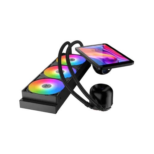 The Xigmatek Connect Pro 360 ARGB CPU Cooler is a top-tier liquid cooling system engineered for users who want exceptional thermal performance, premium display features, and eye-catching ARGB customization. Designed with a large 394×120×27mm aluminum radiator and durable 380mm black-sleeved tubes, the Xigmatek Connect Pro 360 CPU Cooler delivers outstanding heat dissipation for gaming, rendering, and overclocking workloads. Its three high-performance 360×120×25mm fans spin between 600–2000 RPM ±10%, generating a powerful 82.8 CFM airflow and 2.78mm-H2O air pressure, while keeping noise levels low at just 29.8 dBA thanks to long-life Hydro Bearings. The pump, built with a reliable Metallurgical Bearing, operates at 12V, consumes ≤4.2W power, and maintains steady cooling with only 30 dBA noise output. One of the defining features of the Xigmatek Connect Pro 360 ARGB CPU Cooler is its advanced Digital Segment LCD, supported by a crisp 1280×800 px secondary display, allowing users to monitor temperatures, system stats, and custom visuals in real time. With vibrant ARGB lighting across the fans and pump, it enhances any PC build with a premium aesthetic. Compatible with a wide range of platforms—including Intel LGA 1851/1700/1200 & 115X/2011 and AMD AM5/AM4—the Xigmatek Connect Pro 360 CPU Cooler stands out as a powerful, feature-rich, and visually stunning cooling solution perfect for modern high-performance setups.