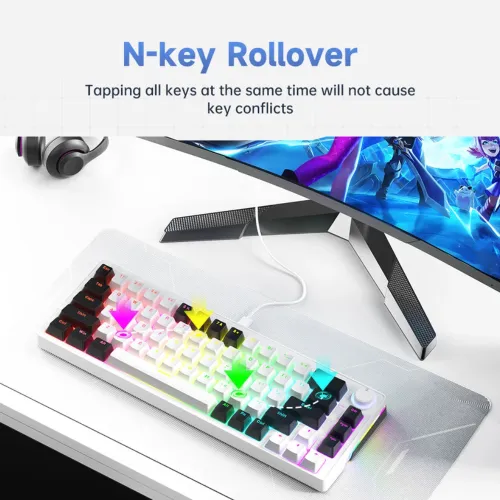 This Zifriend hot-Swappable keyboard is designed as a vibrant backlit mechanical keyboard. The Zifriend Keyboard features eye-catching rainbow backlit effects that elevate any setup. With N-Key Rollover, every keystroke is registered accurately for fast-paced gaming and precise typing. A detachable 1.5m PVC cable adds portability and convenience, making the Zifriend AG68 a customizable mechanical keyboard for both gaming and productivity.