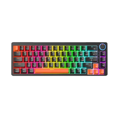 The Zifriend AG68 Hot-Swappable Rainbow Backlit Mechanical Keyboard is a compact and powerful keyboard. The Zifriend keyboard is designed for gamers, creators, and everyday users who want performance, customization, and style. Featuring 67 keys with a multifunction control knob, this Zifriend Mechanical Keyboard offers space-saving efficiency while maintaining full control for volume and settings. Its gasket-mounted structure with foam padding provides a comfortable typing experience with reduced noise and vibration.